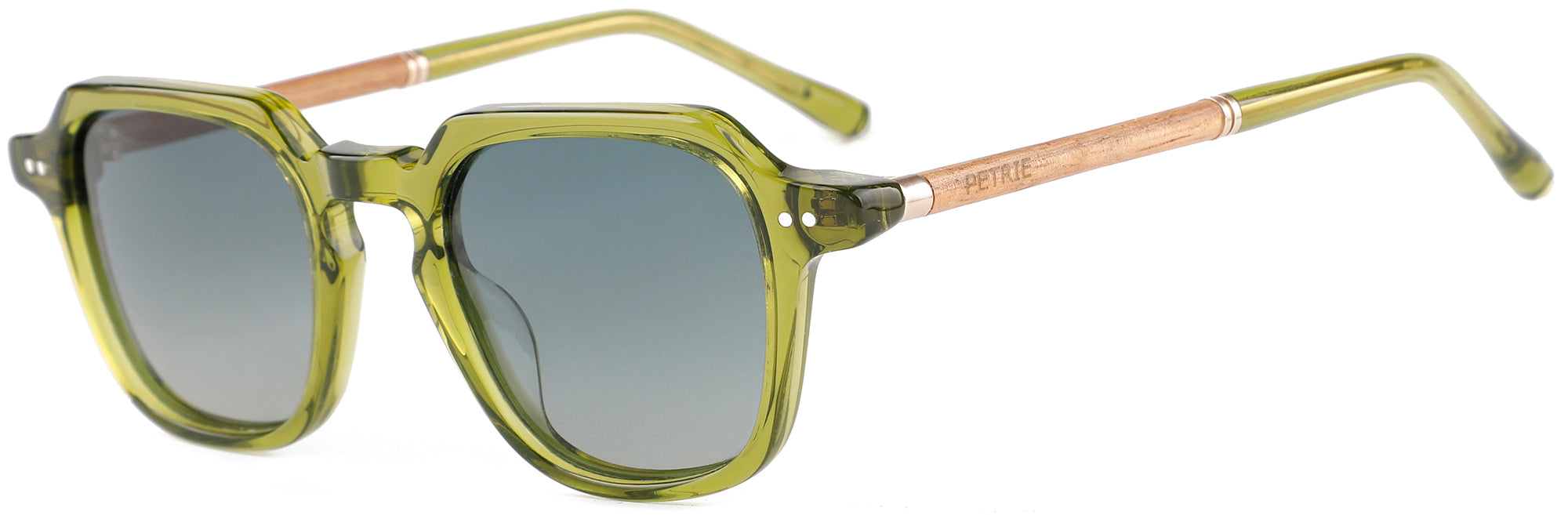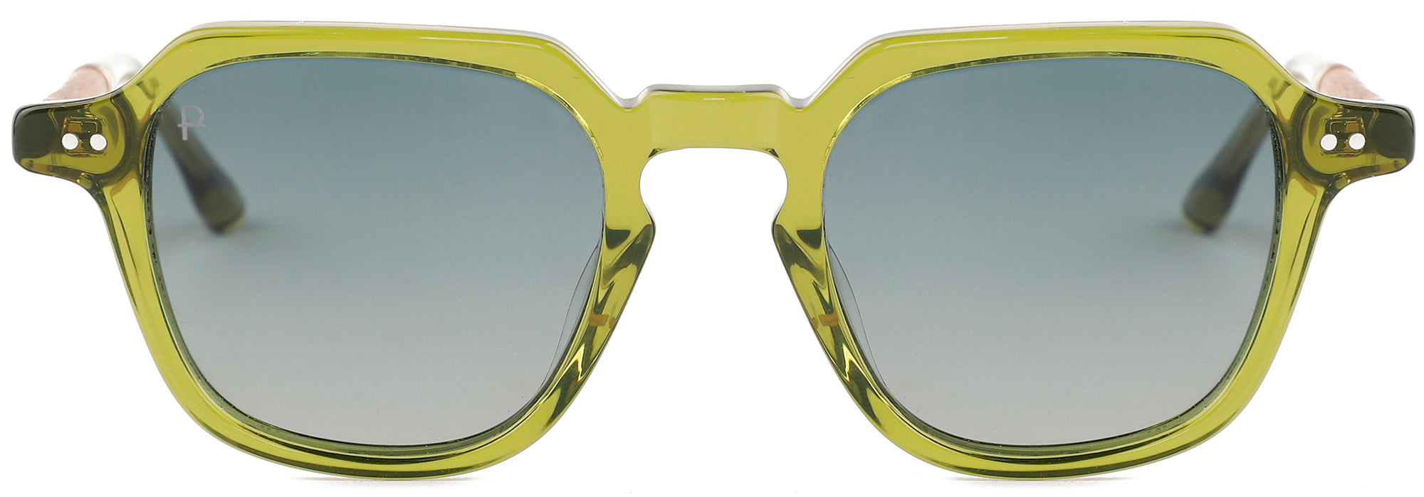 LENTES FABRICADOS CON ACETATO MAZZUCCHELLI VERDE, PATAS DE ACETATO CON MADERA DE EBANO Y ESTRUCTURA METÁLICA, MICAS EYEPOL VERDE DIFUMINADO POLARIZADAS/UV400.